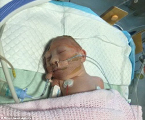 5 ngày sau phẫu thuật, bé gái có biểu hiện ngưng thở. Các bác sĩ thậm chí đã bố trí sẵn phòng lạnh để vợ chồng chị Charlotte nói lời từ biệt với con gái.